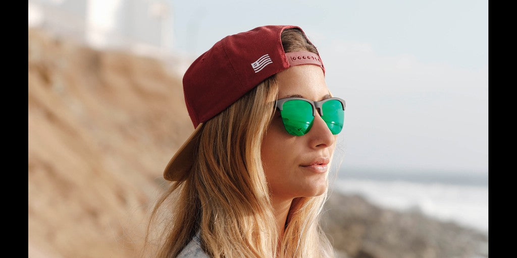 El modelo Gravity Venice combina montura parcial superior negra en acabado mate con lentes de policarbonato verde.